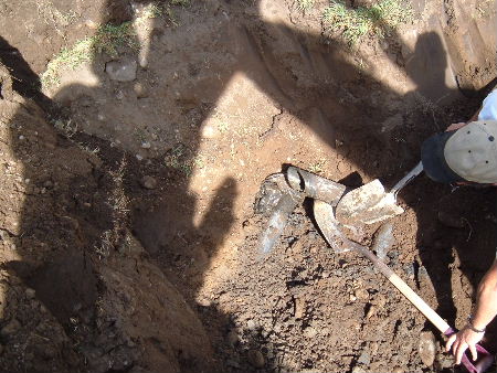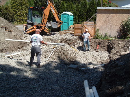 | Ed and Kim work on a gravity fed seepage bed. | |||||||||||||||||||||||||